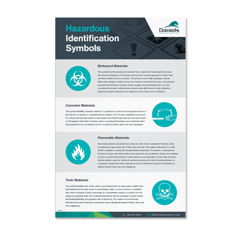 Download this helpful poster to help identify different hazardous symbols that may apply to hospital waste disposal.