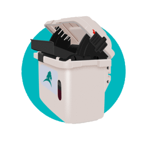 The regular Sharpsmart collector is fitted with an engineered maximum-sensitivity safety tray. The safety-tilt mechanism is activated by the weight of the waste in a single swing action and releases away from the user to ensure safe disposal.
