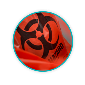 Daniels clinical education team performed a comprehensive audit throughout the facility to identify right-sizing opportunities, segregation issues (i.e., wrappers & coffee cups in kick buckets), and areas where kick buckets could be removed. A major factor of this was the placement of red bag containers in med rooms. Current practice had municipal solid waste containers placed next to red bag waste containers, thus creating opportunities for inappropriate segregation by both patients and staff. Daniels’ improved approach was to place a large trash can by the patient room door with the smaller red bag waste container on the other side of the room, to afford easy disposal for municipal solid waste (MSW) and discourage solid waste from going into the RMW container.