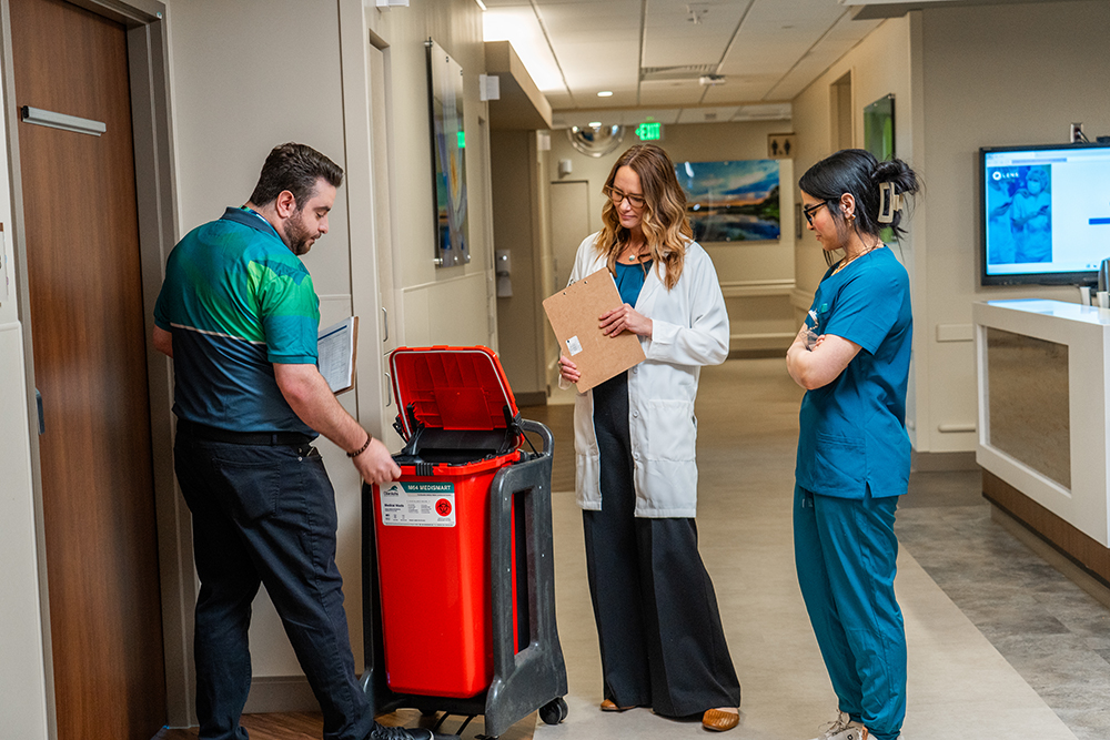 We conduct comprehensive gap analyses and waste audits to determine optimal container placement and sizing at each facility. Our clinical assessments identify segregation efficacy and right-sizing opportunities, with data-driven recommendations implemented during installation.By right-sizing containers, we decrease excess capacity, reduce patient interruptions, and avoid under- or over-utilization, which leads to fewer containers processed, less material waste, and reduced transportation requirements, easing environmental impacts and reducing costs for the hospital.