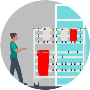 In the assessment phase, our expert field service team will walk the site to audit and blueprint specific requirements location by location, it’s important that our solutions take into account unique staffing, volume and space requirements! The data collected from our ward walks (including onsite logistics, internal and external storage, waste volumes and portering resource availability) will be analyzed to identify safety and efficiency opportunities and design a bespoke ‘best-fit’ working plan prior to installation.
