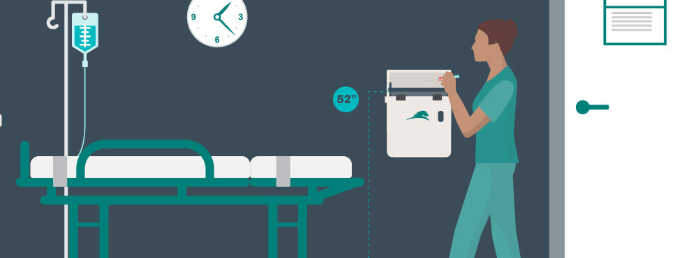 A sharps container study conducted in 2012 and published in the Journal of Infection Prevention1 compared use of sharps containers mounted in a fixed position in patient rooms versus sharps containers located outside of the patient environment. The six year study saw container-associated sharps injuries reduce by 49%, citing the location of the container as one of the leading indicators for the significant decrease. The study can be read here. Conclusions were drawn that sharps should not be hand-transported to a distant container, and while carrying sharps containers directly to the bedside eliminates “transport risk,” use of smaller disposable sharps containers may increase risk of container associated needlestick injuries.