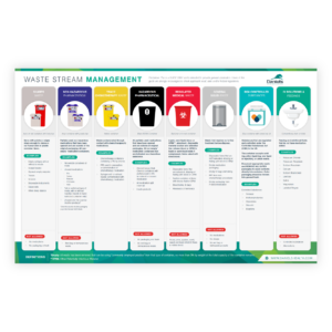 We recommend implementing engaging training programs on the disposal of different medical waste types to educate and protect healthcare workers. You can start with our free waste segregation brochure, which outlines the correct containers and contents for regulated medical waste disposal. However, it’s extremely important to note that this is a general example of a waste segregation poster. Not only do waste definitions vary by state, but often individual hospitals will have their own definitions of waste streams that go above and beyond state requirements.