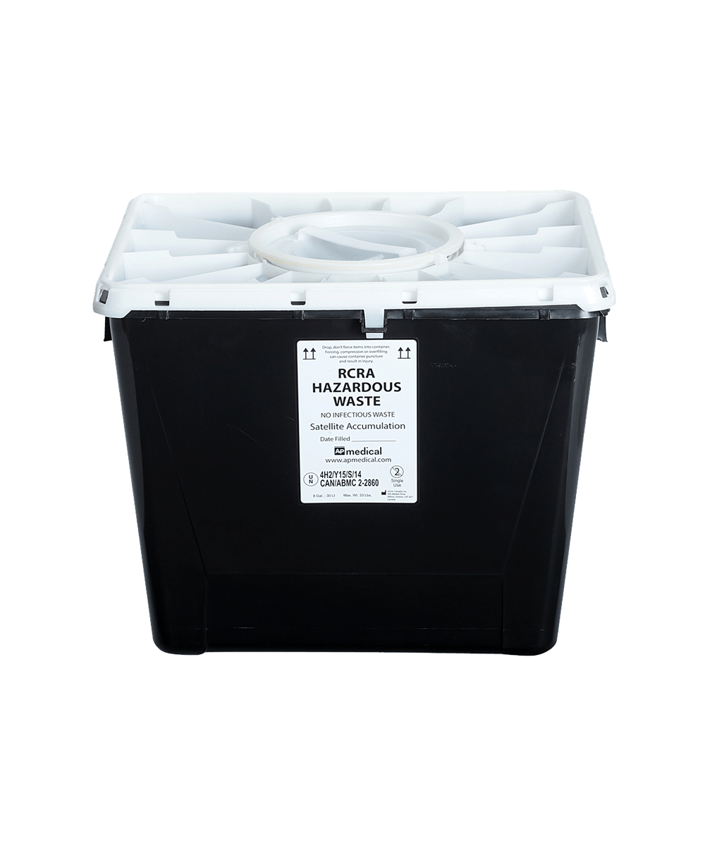 Featuring rear wheels for easy mobility, this 96Gallon container is designed for high volume RMW waste disposal.
