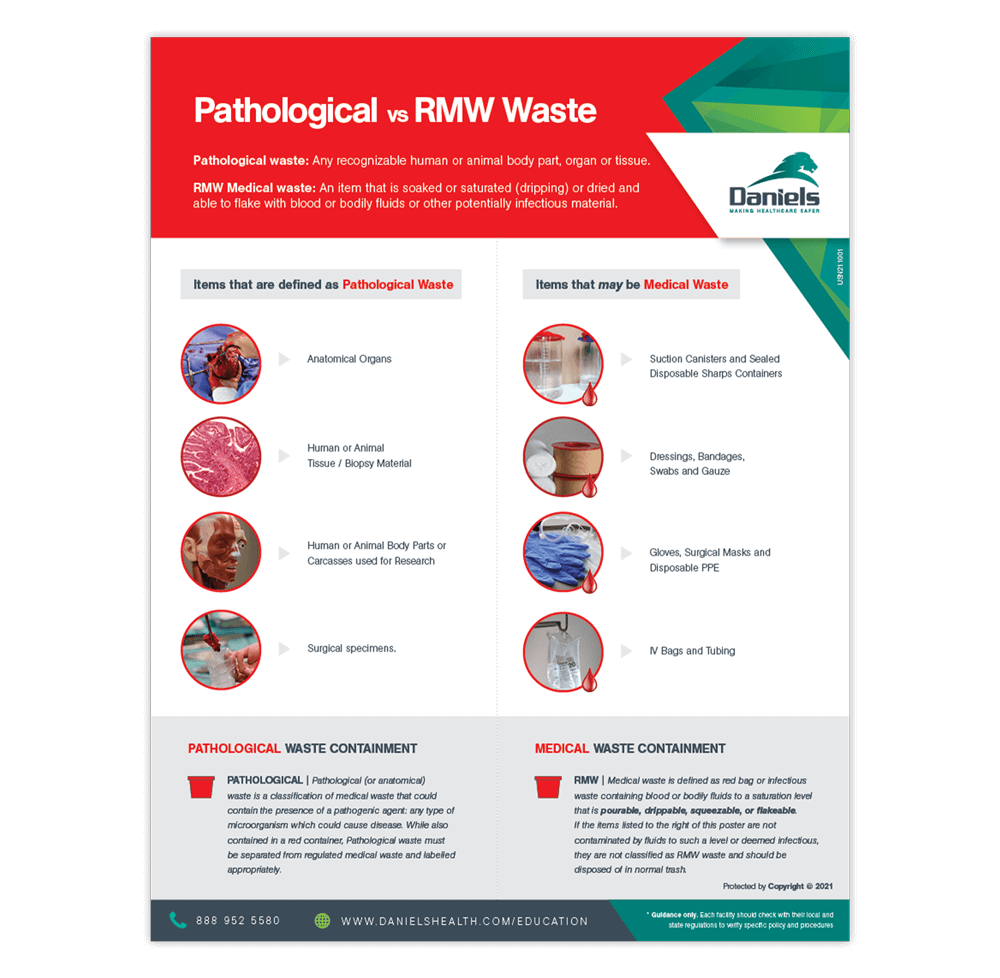 A visual guide to assist healthcare workers in the proper segregation of Pathological and Regulated Medical Waste (RMW).