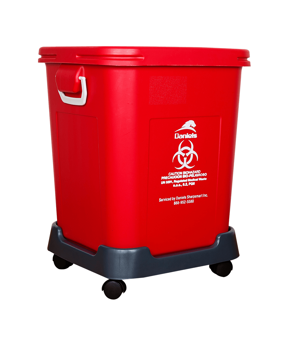 Counter-weighted to provide non-topple mobility to the Daniels 28 and 38 medical waste tubs, the RMW dolly optimizes placement and movement of medical waste through healthcare facilities.
