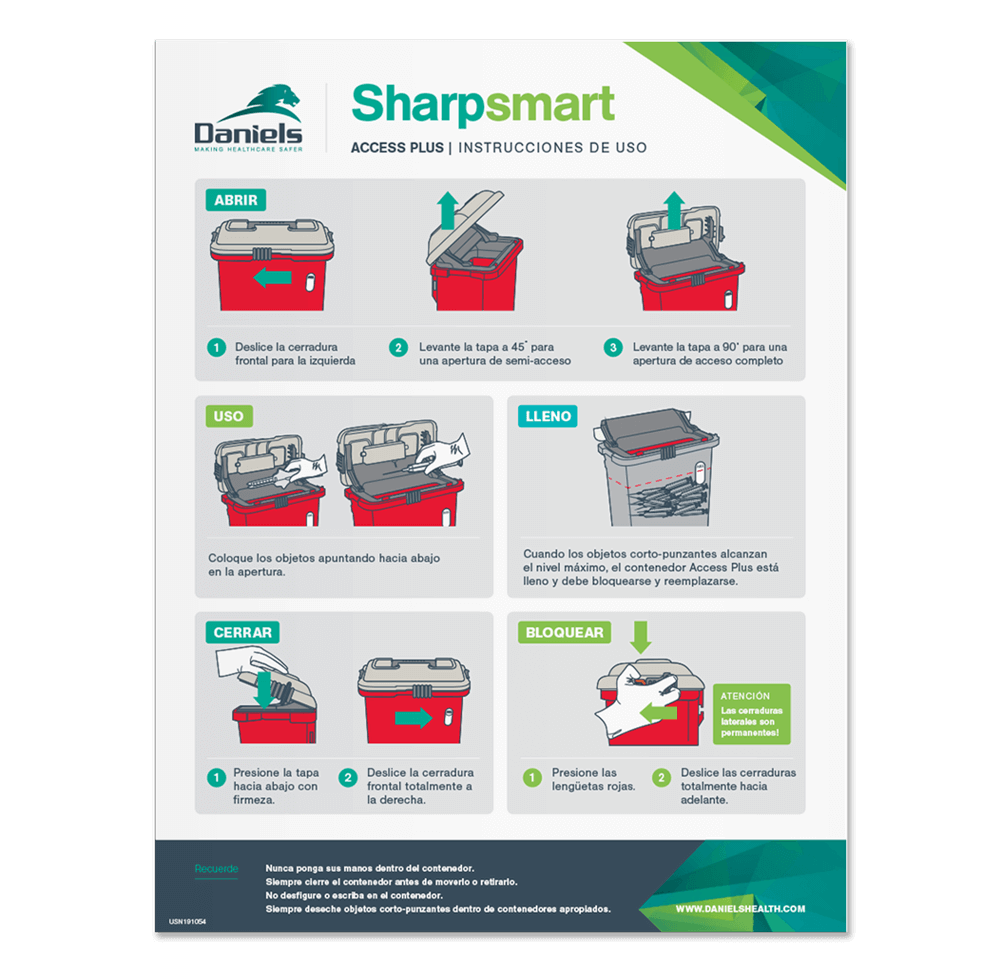 Procedimiento operativo estándar de los contenedores de cortopunzantes S64 Sharpsmart de Daniels. Este guía asiste en el uso correcto de abrir y bloquear seguramente el contenedor de cortopunzantes.