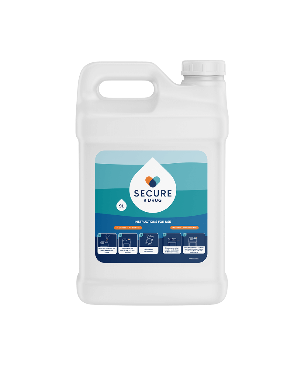 Drug denaturing solution, compatible with up to 1,000 pills.