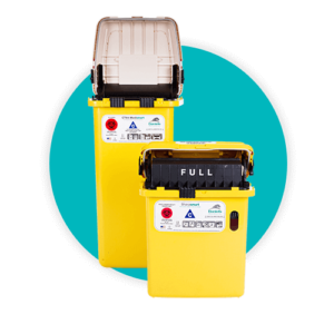 Designed as a point-of-use sharps solution, the Daniels M64 + S22 + Accessmart combo enables dual hands-free disposal with reduced footprint. With regulated medical waste deposited into the M64, the co-mounted S22 captures smaller needles and finer syringes