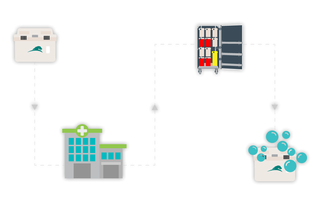 This is just the start of its life cycle… Let us take you on a journey of what happens to a Daniels Sharpsmart container from the moment we drop it off at your hospital dock right through to its robotic emptying and washing process. It’s a fascinating adventure our little containers have – where they’re mounted, how they’re moved, and who interacts with them daily.